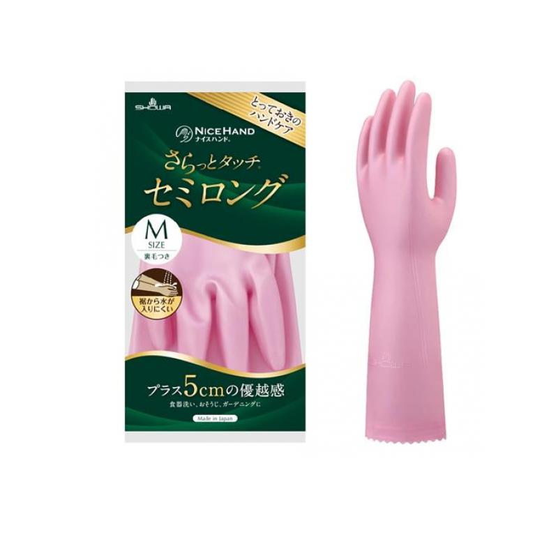 2980円以上で注文可能 ショーワグローブ ナイスハンドさらっとタッチセミロング Mサイズ 1双入 (パールピンク) (1個)