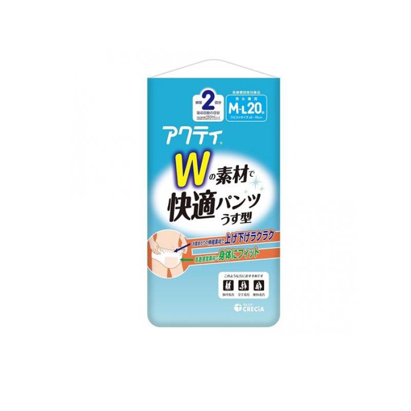 2980円以上で注文可能 アクティ Wの素材で快適パンツ うす型 2回分吸収 M-L 20枚入 (1個)