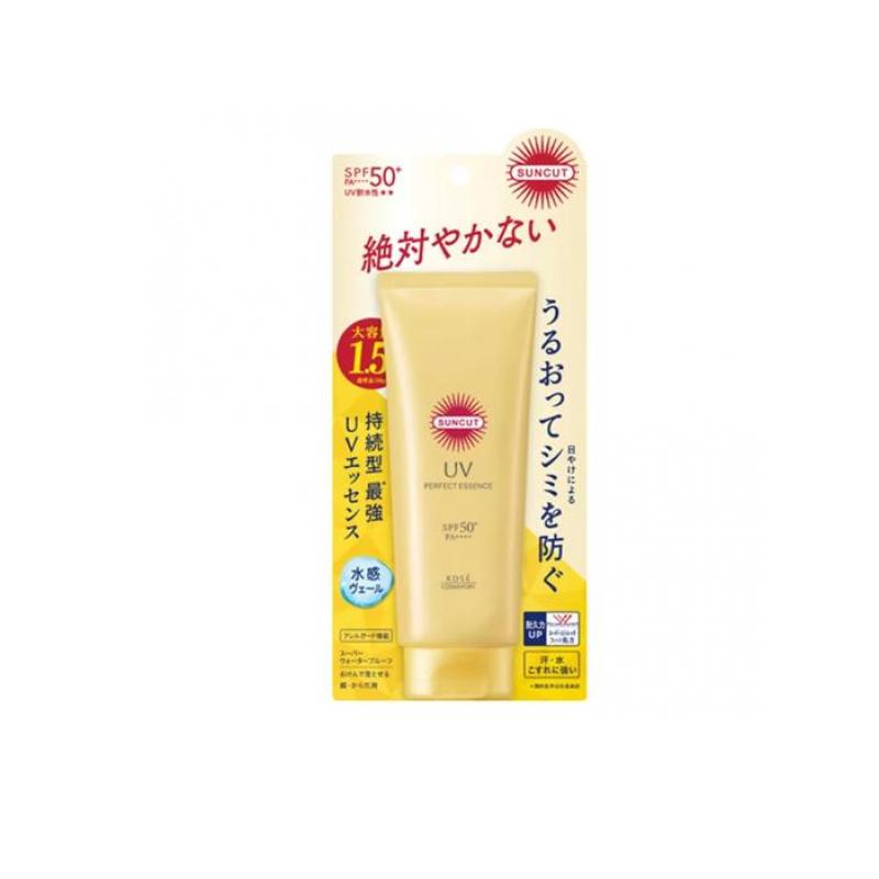 【商品名】サンカット パーフェクトUV エッセンス【このような場合に】汗・水・皮脂・こすれ・動きに抜群に強い持続力!なのに軽くてうるおいたっぷり美容液感覚。【製造販売会社】コーセー(KOSE)【ご使用について】【使用方法】●充分な量を肌にムラなくなじませます。●使用量が少ないと、充分な日やけ止め効果が得られません。ぬれた肌にお使いになる場合は、軽く水気をきって使用し、肌をタオルでふいたあとなども、こまめに塗りなおしてください。※落とすときは、洗浄料などでていねいに洗ってください。【注意事項】●ご使用後は、キャップをきちんとしめてください。●衣服についたときは、洗剤でていねいに洗ってください。また、変色(着色)する場合がありますので、塩素系漂白剤は使用しないでください。●高温の場所や日のあたる場所には、置かないでください。【成分・添加物】水、エタノール、メトキシケイヒ酸エチルヘキシル、安息香酸アルキル(C12−15)、ジ(カプリル酸/カプリン酸)PG、エチルヘキシルトリアゾン、ビスエチルヘキシルオキシフェノールメトキシフェニルトリアジン、ジエチルアミノヒドロキシベンゾイル安息香酸ヘキシル、イソドデカン、DPG、カミツレ花エキス、セージ葉エキス、ヒアルロン酸Na、ホホバ種子油、加水分解コラーゲン、BG、BHT、PEG−10水添ヒマシ油、TEA、(アクリレーツ/アクリル酸アルキル(C10−30))クロスポリマー、(アクリレーツ/メタクリル酸ベヘネス−25)コポリマー、(ジメチコン/フェニルビニルジメチコン)クロスポリマー、カルボマー、キサンタンガム、シリカ、ジフェニルシロキシフェニルトリメチコン、ジメチコン、ジラウロイルグルタミン酸リシンNa、ステアリン酸イヌリン、ステアリン酸ポリグリセリル−10、トリメチルシロキシケイ酸、ポリシリコーン−15、ラウロイルグルタミン酸Na、ラウロイルリシン、フェノキシエタノール