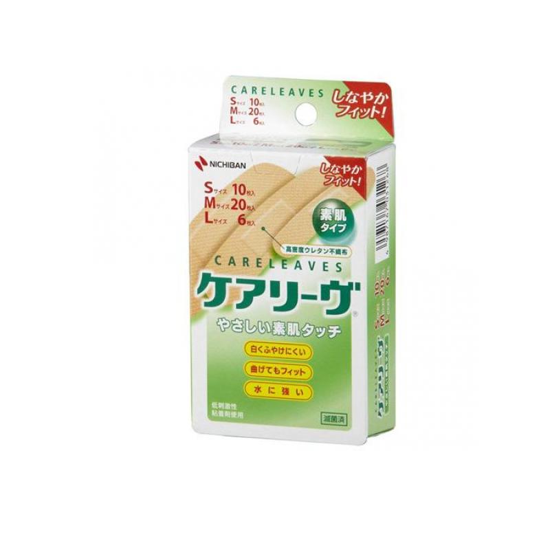 使用期限は6カ月以上先のものを送ります。●ニチバン ケアリーブ やさしい素肌タイプ 救急絆創膏(ばんそうこう)●高密度ウレタン不織布の採用で、しなやかに肌になじみます。●つけている違和感がほとんどない快適な貼りごこちを実現しました。●しかも、低刺激性のアクリル系粘着剤を使用。●かぶれにくく、肌にやさしい救急絆創膏です。●指まわりや屈曲部にしっかりフィット。●タテヨコの伸びが優れており、指を動かしたり曲げたりしてもしっかりフィット。●皮ふの微妙な動きに順応するため、皮ふへのストレスを軽減。●かぶれにくく、やさしい貼りごこちです。●透湿性がよく、皮ふのムレが少ない。●皮ふのムレが少なく、白くふやけたりすることがほとんどありません。●角質細胞のはがれが少なく低刺激。●一般医療機器(クラス1) 医療機器登録番号:40B2X00015131170