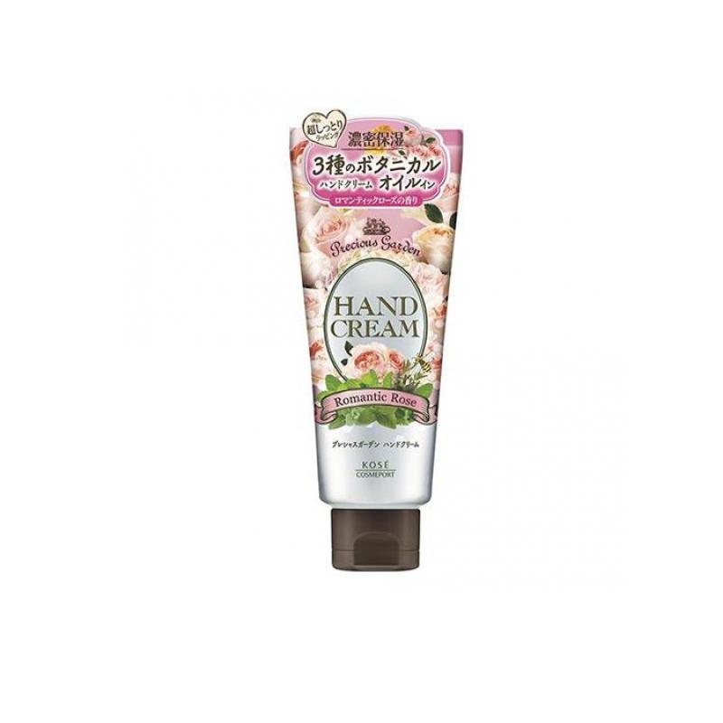 【商品名】プレシャスガーデン ハンドクリーム ロマンティックローズの香り【製造販売会社】コーセー(KOSE)【ご使用について】適量をとり、手肌・指先によくなじませてください。【成分・添加物】水、グリセリン、プロパンジオール、ステアリン酸、セテアリルアルコール、アルギニン、オリーブ果実油、シア脂、センチフォリアバラ花エキス、ハチミツ、ホホバ種子油、BG、(アクリル酸ヒドロキシエチル/アクリロイルジメチルタウリンNa)コポリマー、フェノキシエタノール、メチルパラベン、香料