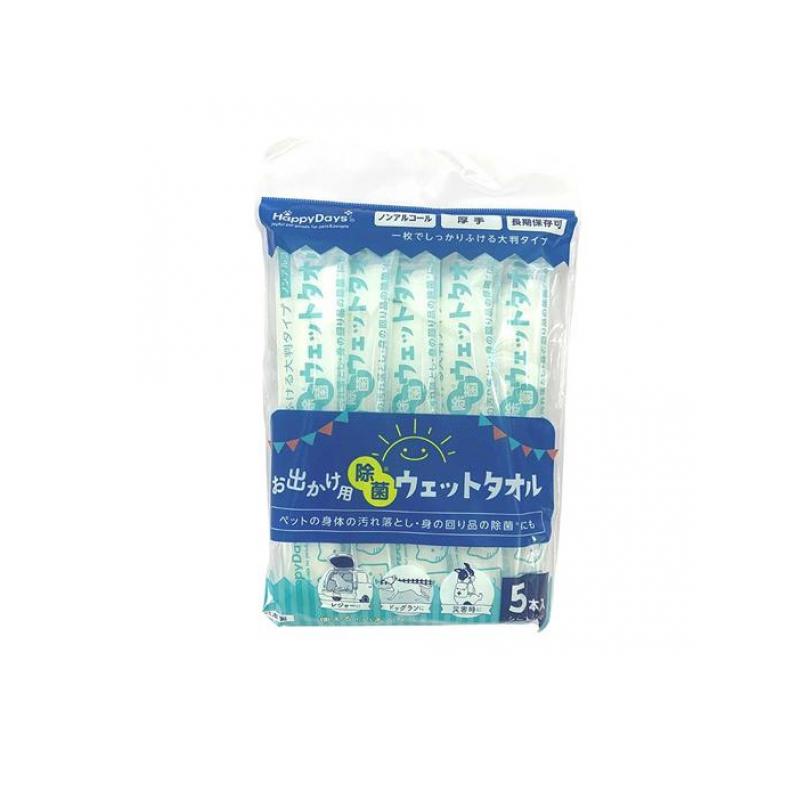 ペットプロ HappyDays お出かけ用除菌ウェットタオル 5本入 (1個)