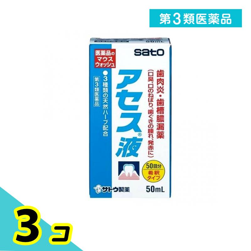 第3類医薬品 アセス液 50mL 50回分 歯肉炎 歯槽膿漏 マウスウォッシュ 洗口液 佐藤製薬 3個セット