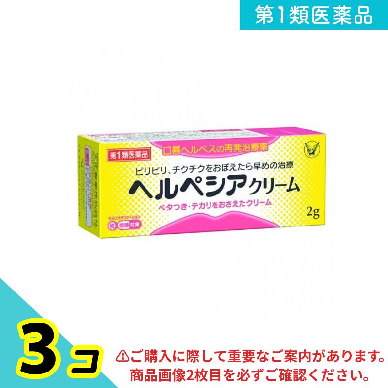 第1類医薬品 ヘルペシアクリーム 2g 塗り薬 口唇ヘルペス 再発治療薬 市販 3個セット