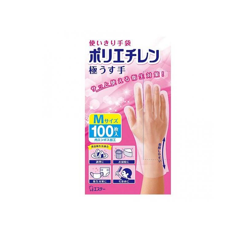 エステー 使いきり手袋 ポリエチレン 極うす手 半透明 100枚 (Mサイズ) (1個)