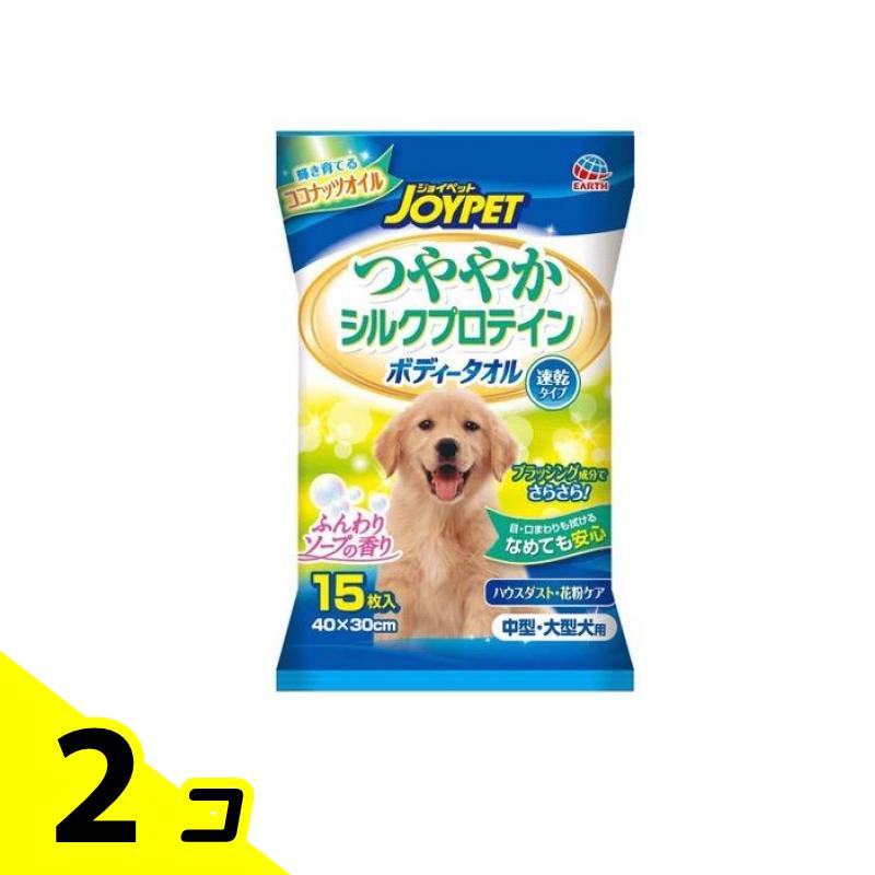 JOYPET(ジョイペット) ボディータオル つややかシルクプロテイン 犬用 15枚入 (中・大型犬用) 2個セット