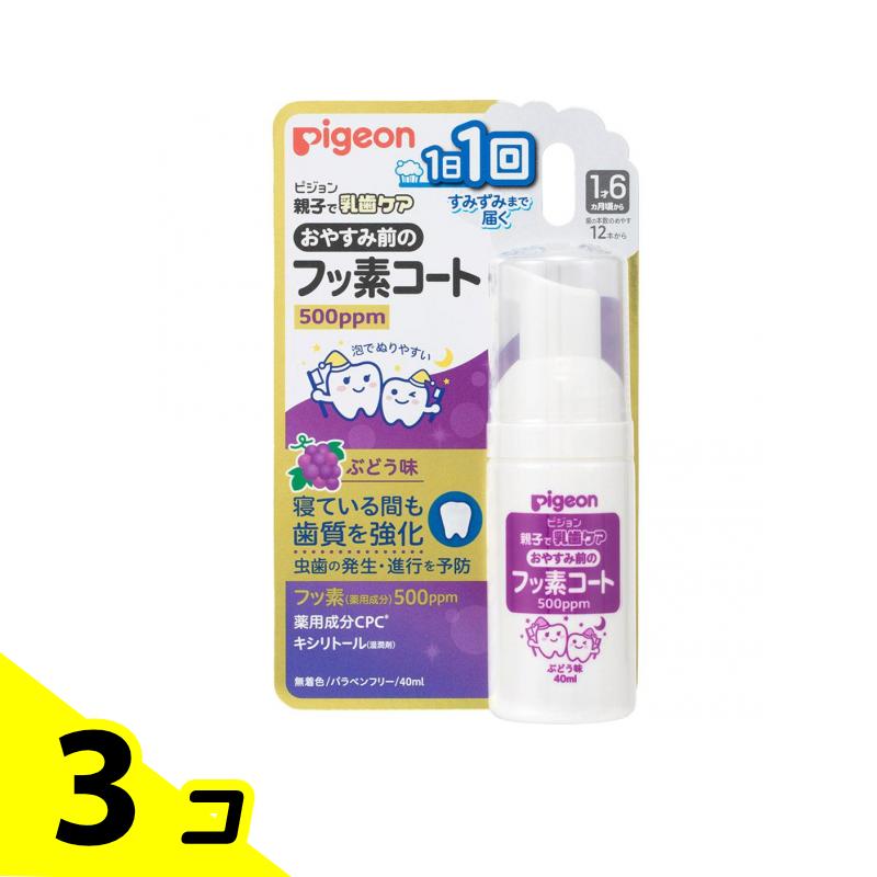 ピジョン おやすみ前のフッ素コート 500ppm ぶどう味 40mL 3個セット