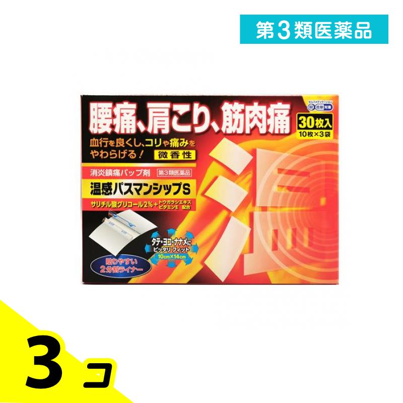 第3類医薬品 温感パスマンシップS 10×14cm 30枚 3個セット