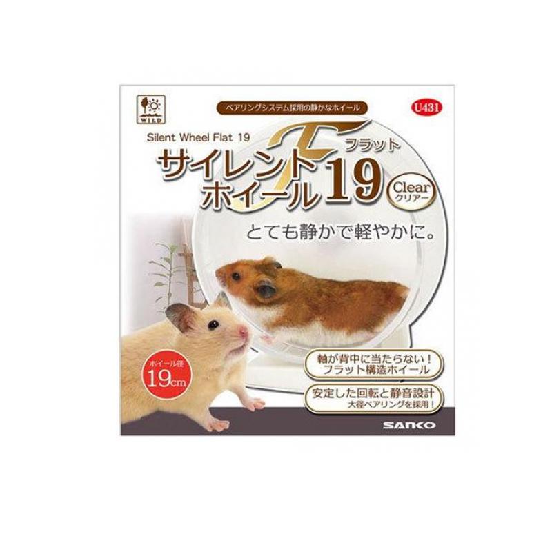 【商品名】三晃商会 サイレントホイール フラット 19 クリアー【製造販売会社】三晃商会(SANKO)【ご使用について】【使用上の注意】・本品はハムスター等の小動物用運動器具(回し車)です。・他の目的及び他の生き物には使用しないで下さい。・本品の取り扱いは丁寧に行って下さい。投げたり、転がしたりしないで下さい。・火気には絶対近づけないで下さい。・直射日光の当たる所、高温・高湿度になる場所には置かないで下さい。・幼児が本品で遊んだりしない様、注意して下さい。・部品の分解や改造をしないで下さい。・必ず、キスゴムが吸着できる壁面やケージワイヤーに取り付けて使用して下さい。置いただけの状態では、ホイールが転倒する場合があります。・使用している間に、固定部(回転パーツ、ロックナット)等がゆるんでくる場合がありますので、使用状況を見ながら、時々確認を行って下さい。・複数の生き物が居る場所(多頭飼い等)では使用しないようにして下さい。・回転パーツには、金属部品(ベアリング)を使用していますので、水で洗わないで下さい。金属部品(ベアリング)が濡れると、サビが発生して、回りが悪くなったり雑音が出る場合があります。・ベアリングの構造上、ホイールのブレに若干のバラつきがありますが、ご了承下さい。・サイレントホイールフラットは無音ではありません。(従来のホイールに比べて回転時に発生する音が静かなホイールです。):生き物の生活音や若干の回転音、また、本品をケージに固定する場合にケージ部分が揺れる事によって発する音に関しましては、ご容赦いただきますようお願いいたします。・生き物は、種類や性格、体格(体重やサイズ、成長など)により、個体差があります。飼育者の方は生き物の行動や習性をよく理解・観察して本品の使用範囲を超える場合や、異常や危険を感じた場合は、直ちに使用を中止して下さい。・飼育用品は、100%安全な環境を提供できるものではありません。生き物は、成長によって大きさが変化したり、各個体によって性格も異なります。また、四季を通して、様々に取り巻く環境も変化します。大切なペットの安全な飼育環境を常に保てるようにしてあげましょう。・飼育時における事故等に関しましては、責任を負いかねますので予めご了承下さい。・製品の仕様、価格等は予告なく変更する場合があります。