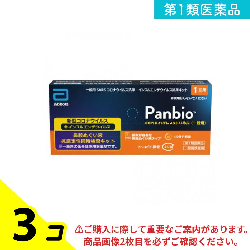 第1類医薬品 Panbio COVID-19/Flu A&Bパネル(一般用)SARSコロナウイルス抗原・インフルエンザウイルス抗原キット 1回用 3個セット