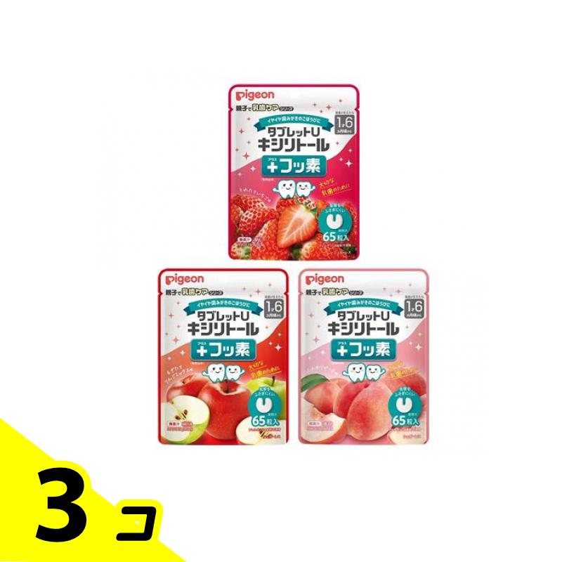 ピジョン タブレットU キシリトール+フッ素 とれたていちご味&もぎたてりんごミックス味&ふんわりピーチ味 65粒入 3個セット