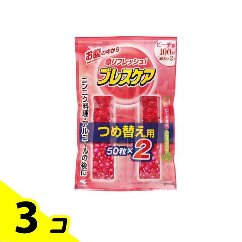 口臭 息 清涼カプセル 桃 携帯 ブレスケア ピーチ味 詰め替え用 100粒(50粒×2) 3個セット