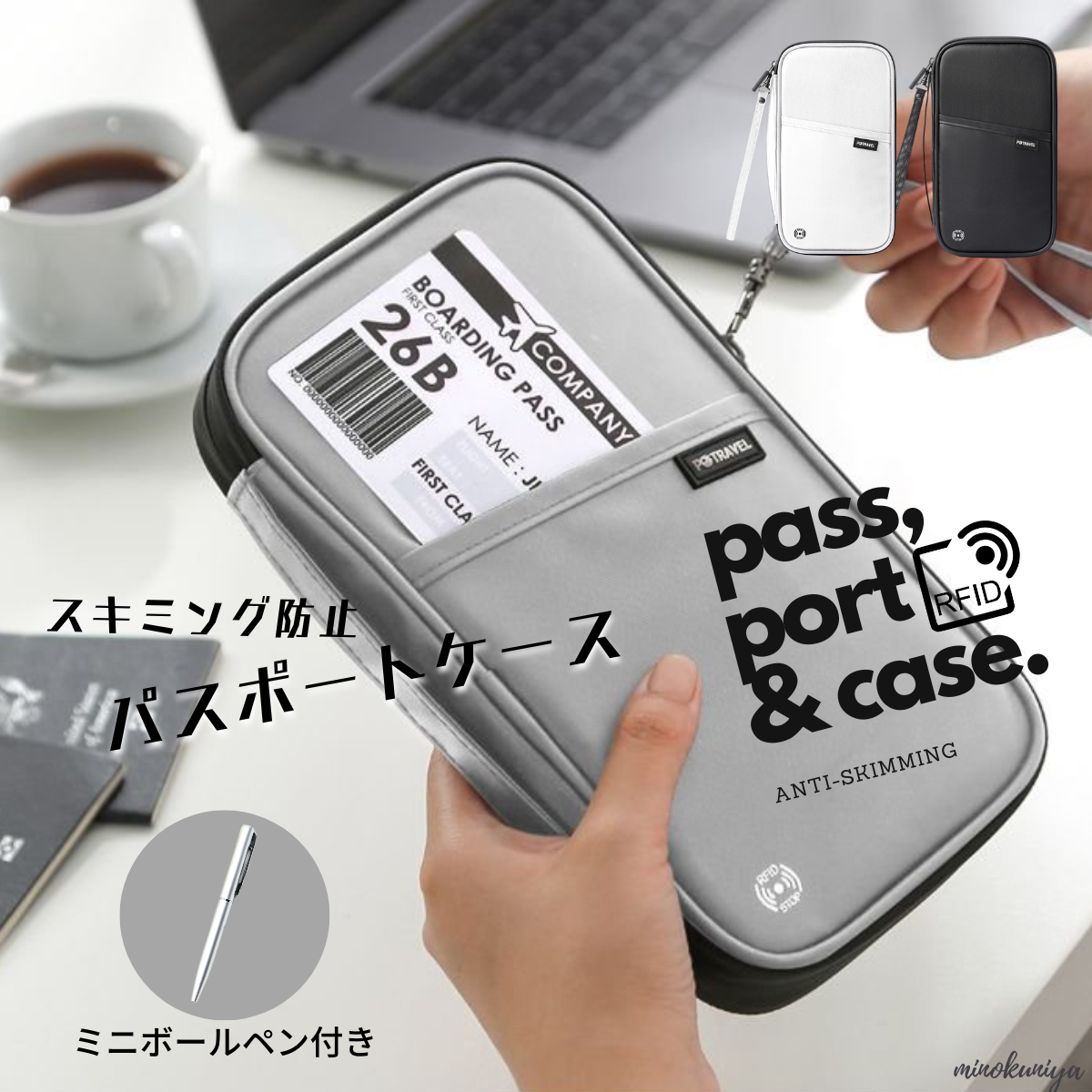 パスポートケース スキミング防止 カバー マルチケース トラベルポーチ 海外旅行 トラベル 旅行 航空券(グレー)
