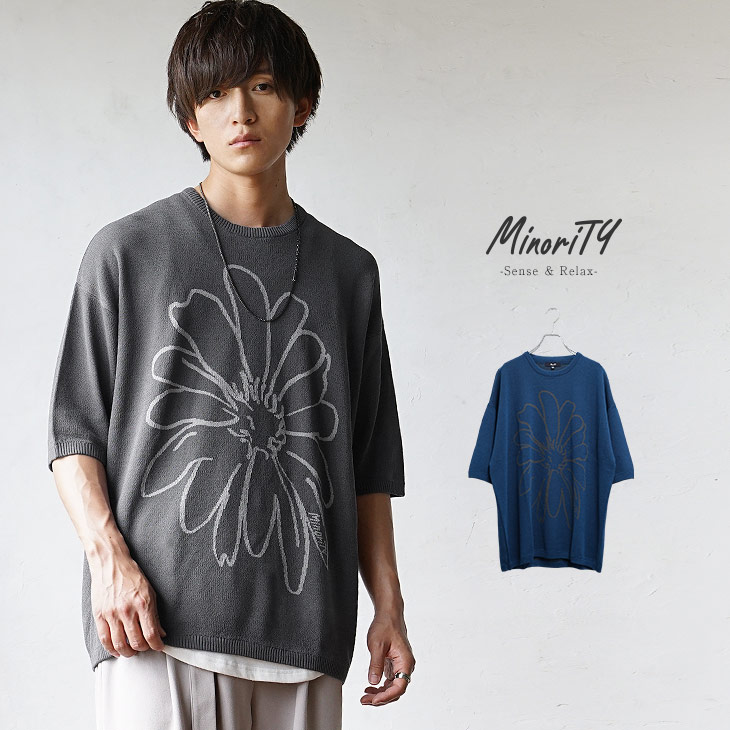 【フラワーサマーニット】ベーシックで使いやすい色味のサマーニットにトレンドの花柄をあしらったデザインが特徴的な1枚。