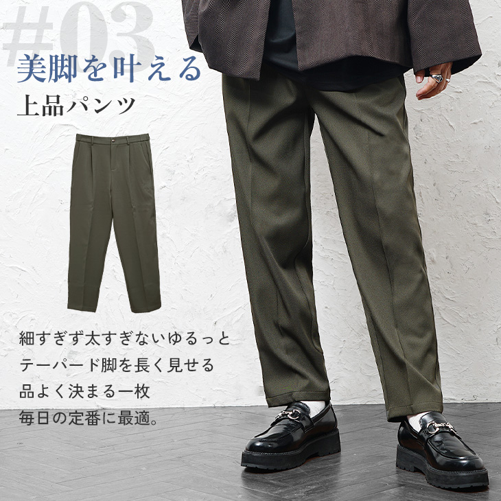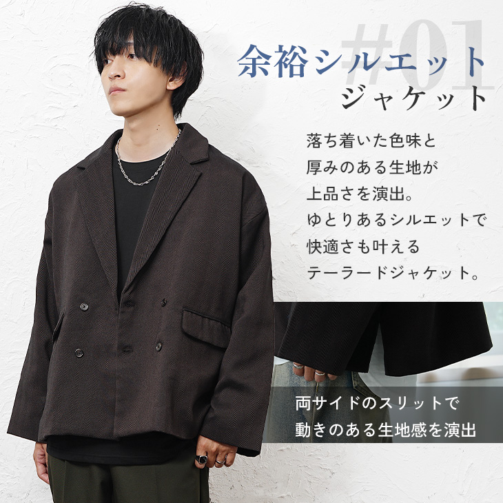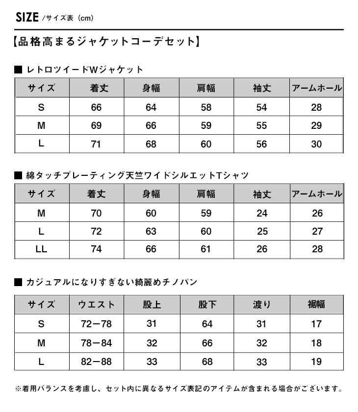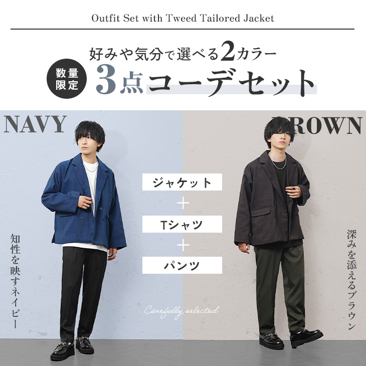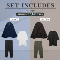 届いた瞬間に秋冬で使える「テーラードジャケット」と「インナーTシャツ」さらに「スラックス」の3アイテムのコーディネートが完成するコーデセット。