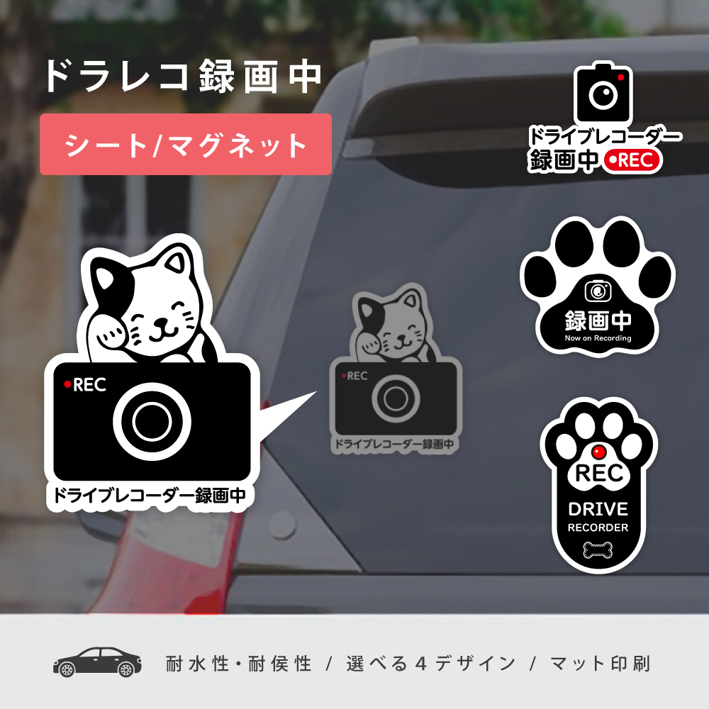 録画中 肉球 ネコ 車用ステッカー ドライブレコーダー搭載車両 ステッカー シールorマグネット 選べるサイズ4デザイン 犬 猫 好きな方におすすめ stk-00004