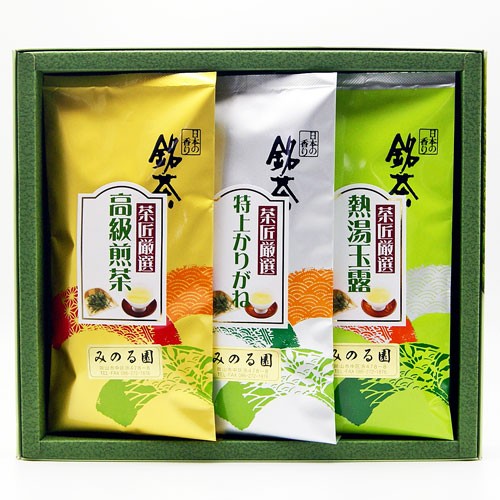 茶匠厳選の高級煎茶 竹・特上かりがね・熱湯玉露の3本セット 各90g入りです。