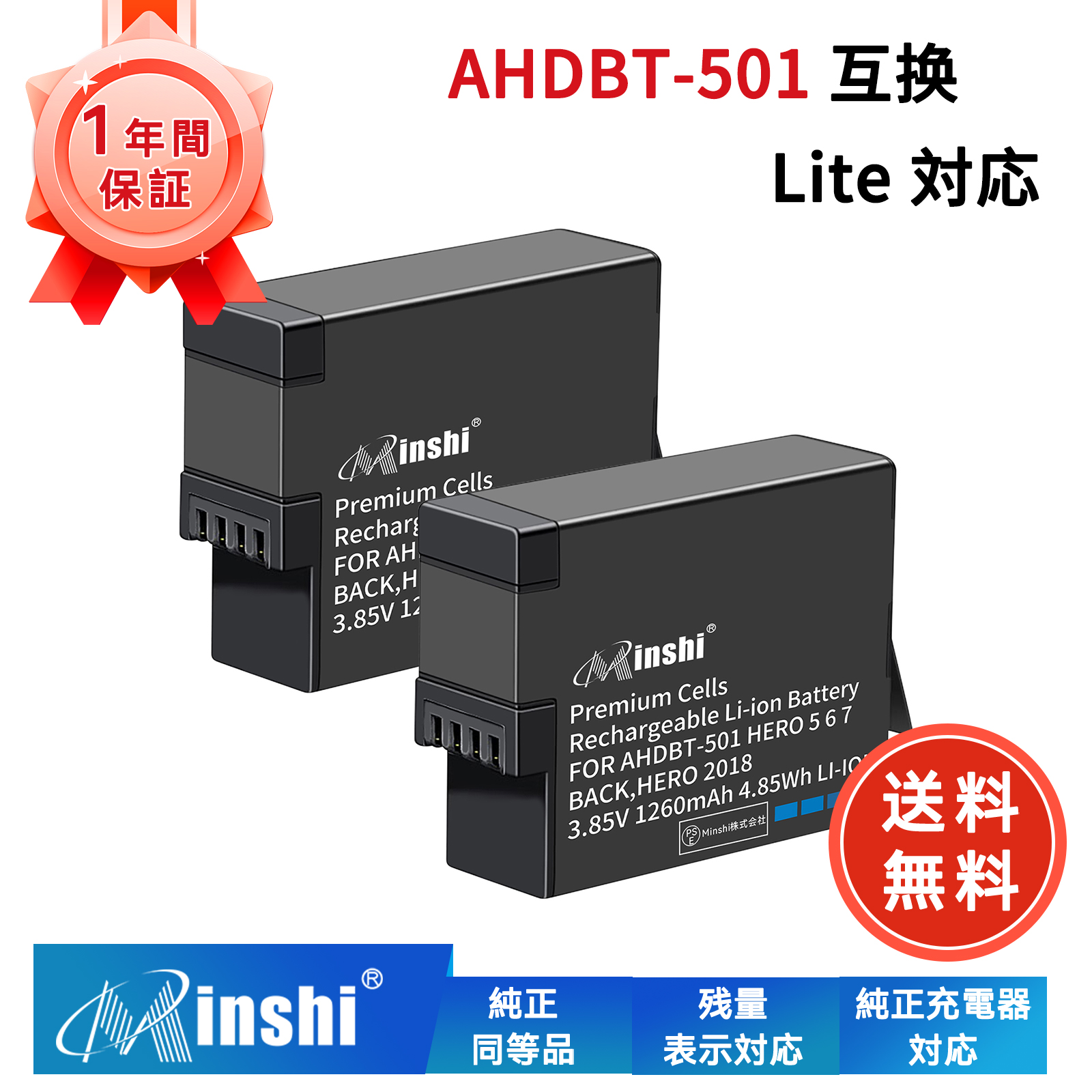 新品 GOP GoPro Hero7 Black 互換バッテリー【1260mAh 3.85V】 1年保証 リチャージャブルバッテリー リチウムイオンバッテリー デジタルカメラ デジカメ 充電池