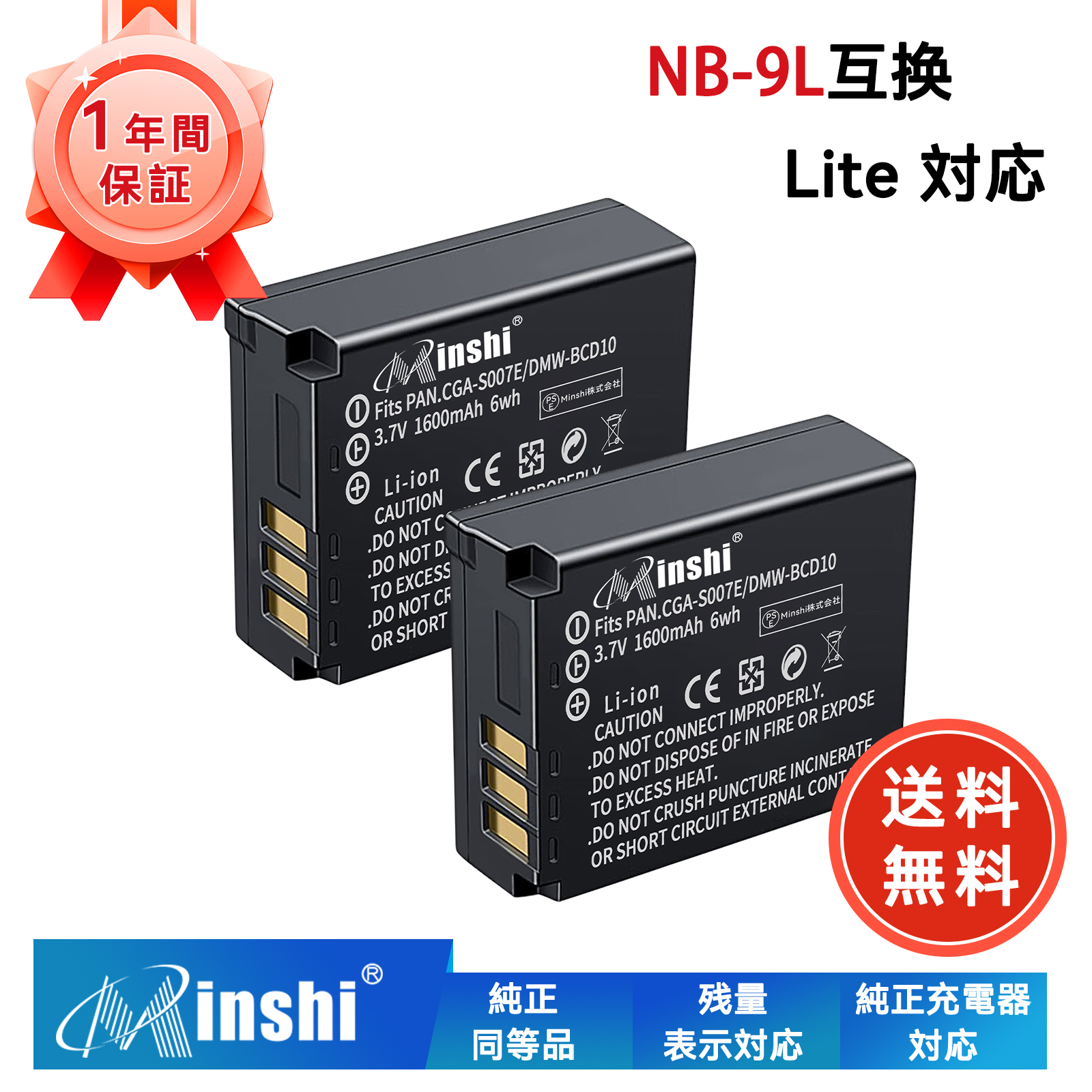 【2個セット】minshi Panasonic LUMIX DMC-TZ1 DMC-TZ3【1600mAh 3.7V】 高品質DMC-TZ3 DMW-BCD10交換用バッテリー