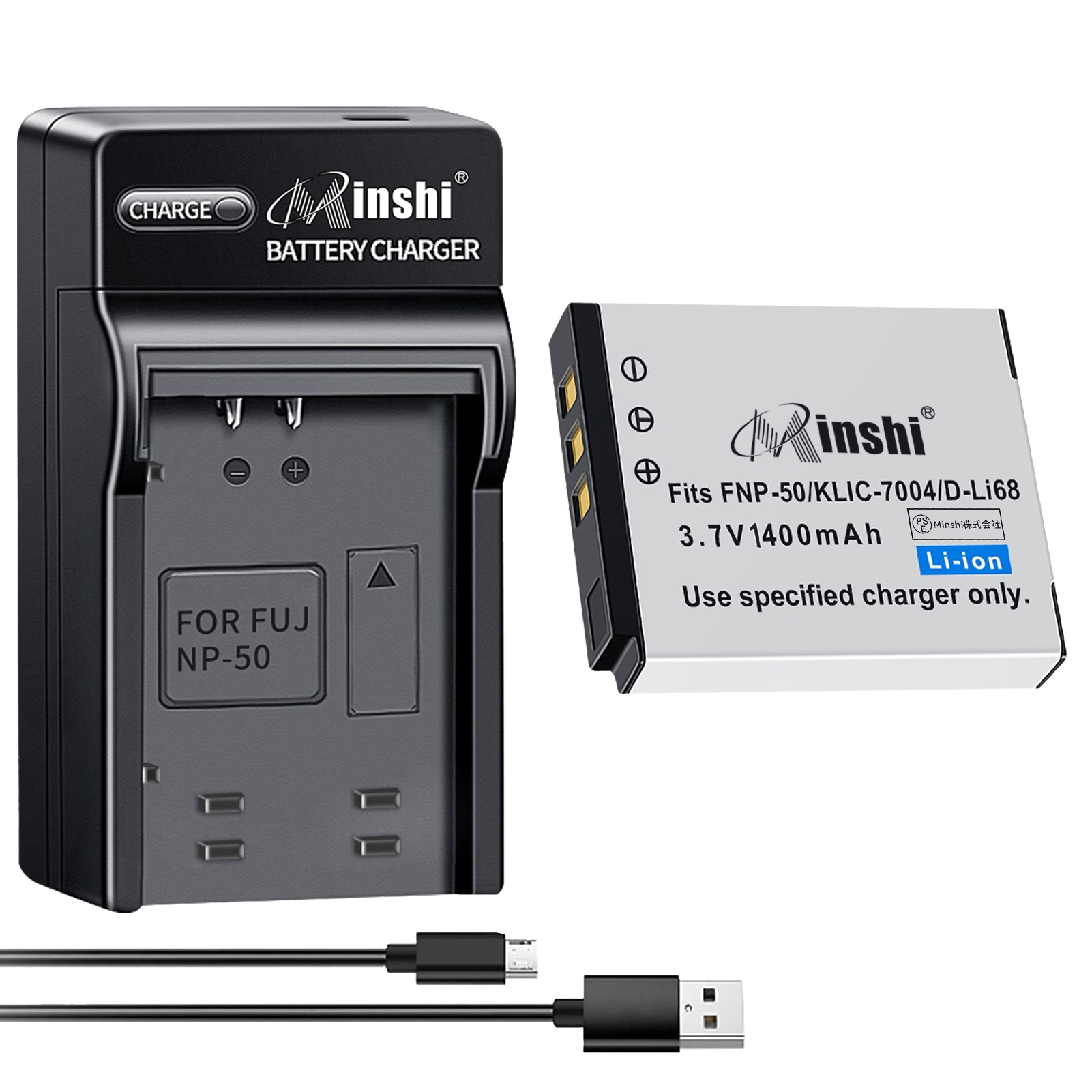 【1年保証】FUJIFILM FinePix F820EXR【NP-50、NP-50A換急速USBチャージャー】対応 NP-50 1400mAh 高品質交換バッテリー