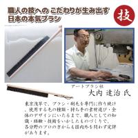 ふとんのお手入れは払うのが新常識熟練職人が丹念に仕上げた天然毛の布団払い専用ブラシ。人間は寝ている間にコップ1〜1.5杯の汗をかくと言われ、定期的に布団の天日干しをすることが大切です。天日干しをした布団をしまう時に、昔は布団をたたきましたが、今はあまり効果がないと言われています。布団をたたきすぎても中身の綿が飛び出したり、布団を傷めるだけです。本品は、布団の表面を軽くたたきホコリを浮かして、ブラッシングするだけで隅々までお手入れができ、枕のホコリ落しにもご使用いただけます。ブラシ部分は長毛と短毛を段違いに組み合わせた専用形状になってます。全長60センチと長いため、布団の表面だけでなくカーテンなど、大きい(広い)生地製品にもお使いください。