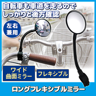 自転車 ミラー ロング フレキシブルミラー (自転車ミラー)KW-60 サイクルミラー バック サイド 右 左 簡単取り付け メール便 送料無料