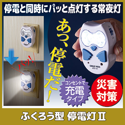 停電時自動点灯 led ふくろう型 停電灯II ATD-101 防災グッズ ledライト コンセント充電 照明 かわいい 停電対策 防災 非常灯 避難