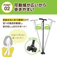 全方向に15°傾く支柱により安定して歩行をサポート、足への負担を軽減。