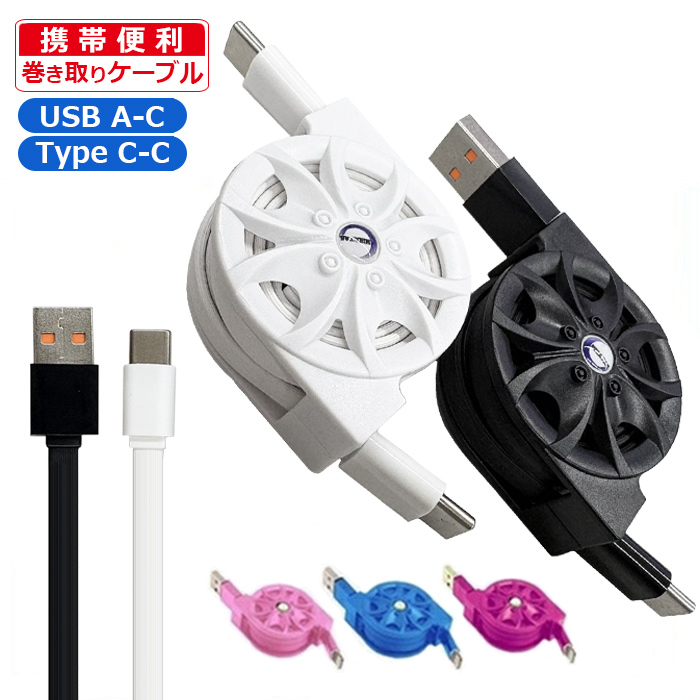 | 商品名 | 【巻き取りUSB充電ケーブル】 ●USB-A-C(普通充電):2A出力対応 USB-A→USB-C端子 (※ブラックのみiPhone15シリーズ非対応) ●USB-A-C(急速充電):QC3.0対応 USB-A→USB-C端子 ●TYPE-C-C(急速充電):PD60W対応 端子のご選択をお間違えないようご注意ください。 |