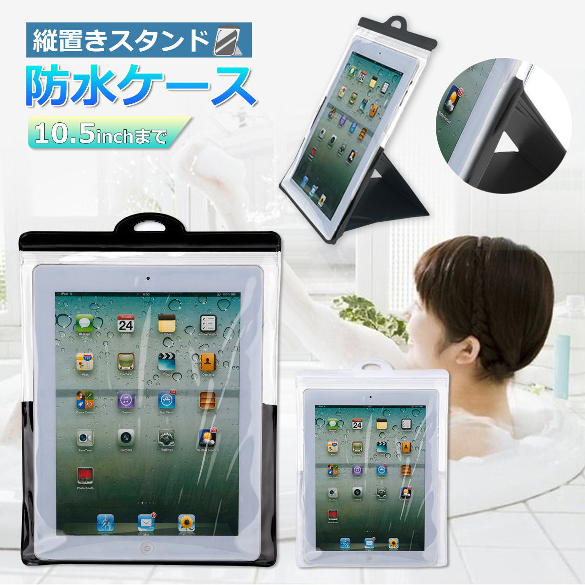 | 商品名 | 縦置きスタンド機能付きタブレット防水ケース |
