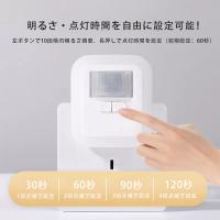 点灯時間は30秒、60秒、90秒、120秒の4パターンから選択可能で、明るさ調整ボタンを長押しするだけで簡単に設定できます。