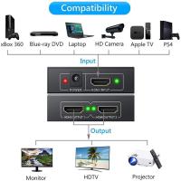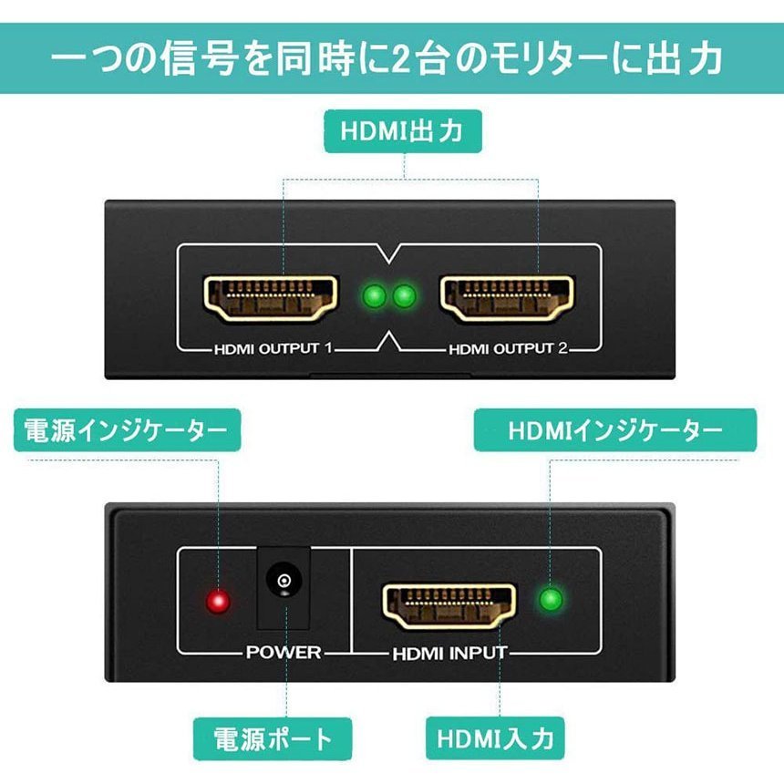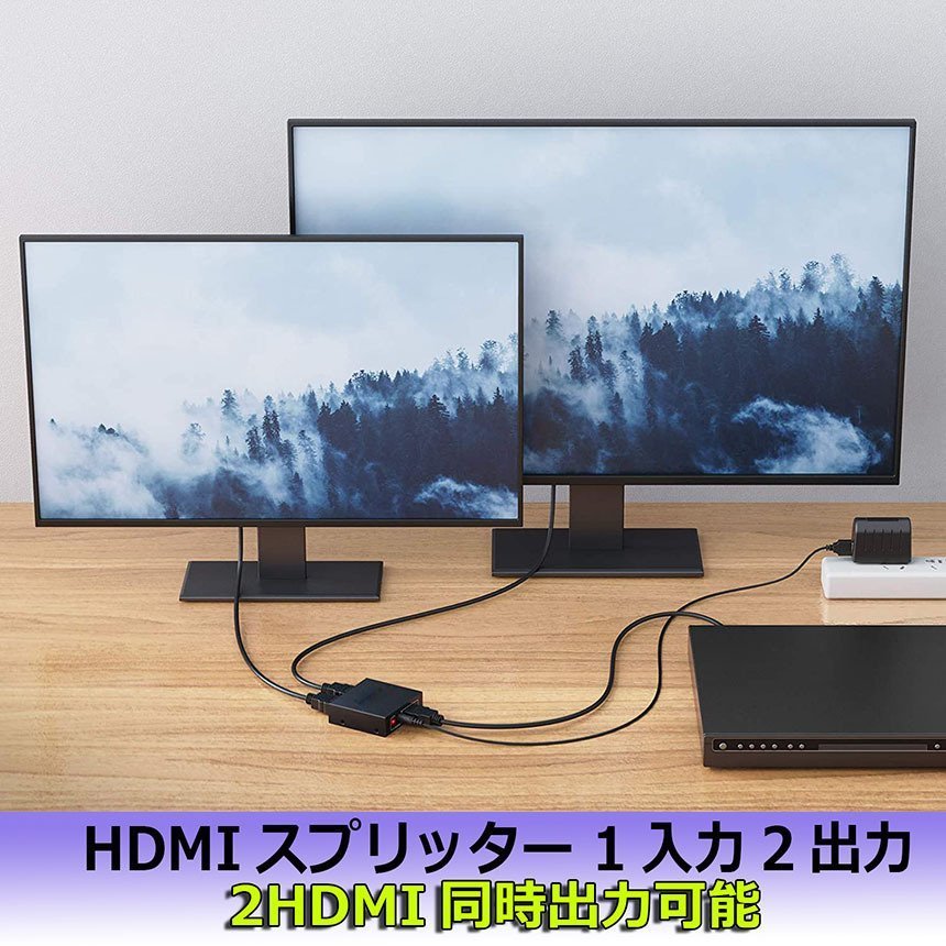 【1入力2出力】HDMI分配器は1台のHDMI機器からテレビやプロジェクターなど2台のモニタに2画面同時出力することができます。品質損失なしで映像・音声を完璧に伝送できます。