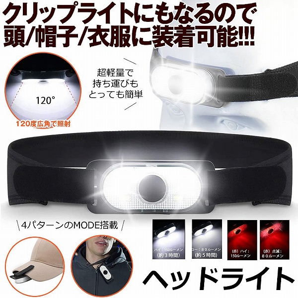 不規則なヘッドライトは持ち運びに不便で、約7.2CM*3CM*2CMサイズのフラット形状で、持ち運びが楽です。伸縮性のあるバンドが自由な長さに調節できます。約40g軽量型長時間で頭部に着けていても疲れません。そして、クリップライトとして、頭、帽子、衣服に装着できます。