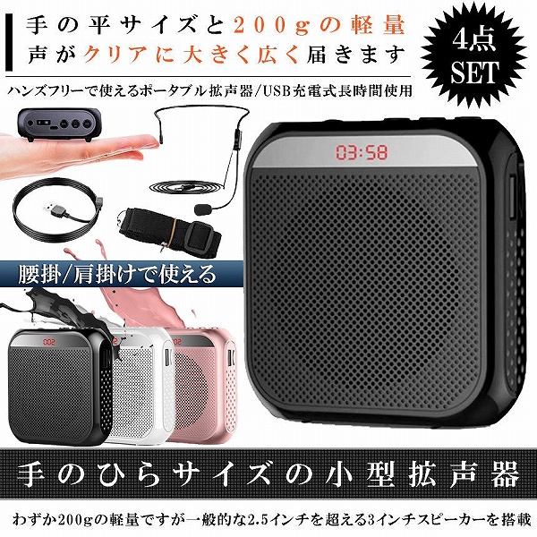 プレゼンや社内教育【コンパクト&軽量で大音量】手の平サイズとわずか200gの軽量ですが、一般的な2.5インチを超える3インチスピーカーを搭載しておりますので、声が大きく広く届きます。 また、ノイズ軽減の技術を採用して、発言者の肉声をクリアに拡声できます。