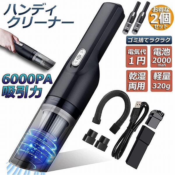 ハンディクリーナー 2台セット 車用掃除機 コードレス 車 強力 カークリーナー 充電式 ハンディ掃除機 120W 6000pa 乾湿掃除機 乾湿両用クリーナー 送料無料