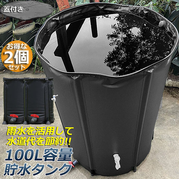貯水タンク 雨水タンク 2個セット 折りたたみ式 100L ウォーターバケツ 洗車 水やり 雨水を貯めて節水可能 防災 屋外用 非常時 簡単設置 雨を
