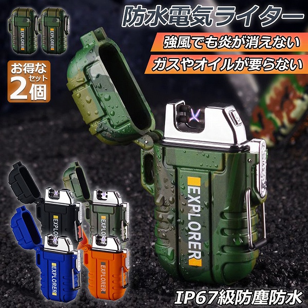 電子ライター 2個セット 充電式 プラズマ 防水仕様 USB 充電式 ダブルアークライター ガス オイル 不要 軽量?薄型 持ちやすい 無炎 防風 おしゃれ お墓参り bbq