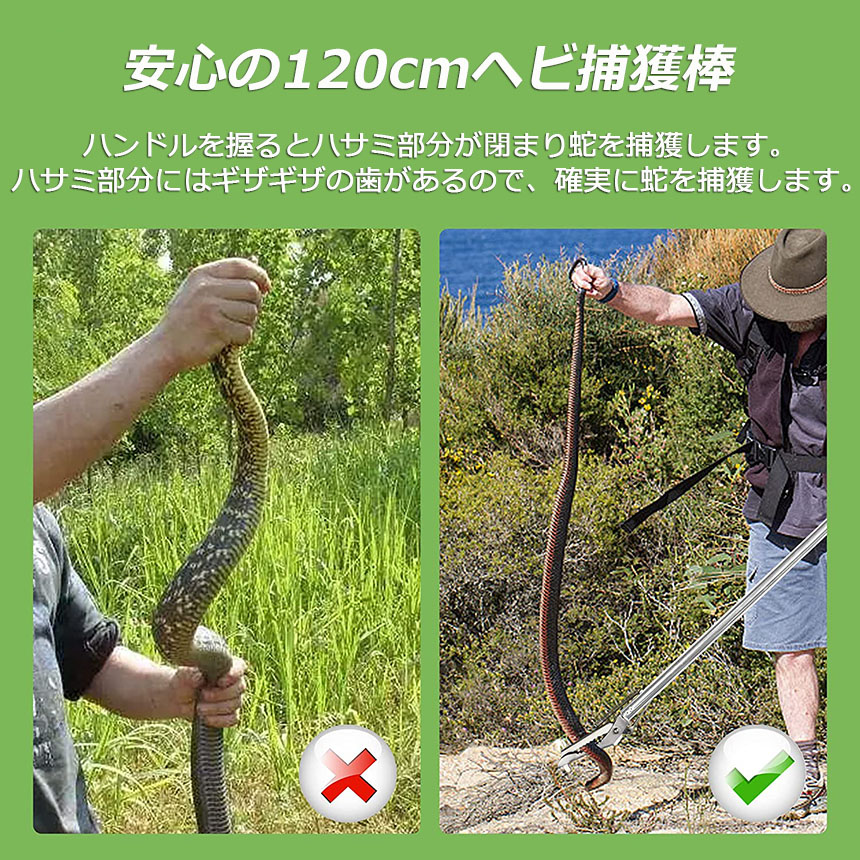 ヘビを挟み捕獲する事ができます。