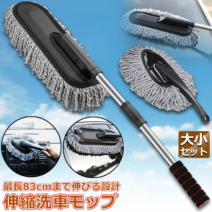 ハンディモップ 洗車モップ 大小セット 車ボディ ホコリ取り マイクロファイバー 洗車 伸縮 モップ 洗車ブラシ 車 埃取り 伸縮式 ボディ用 車 窓