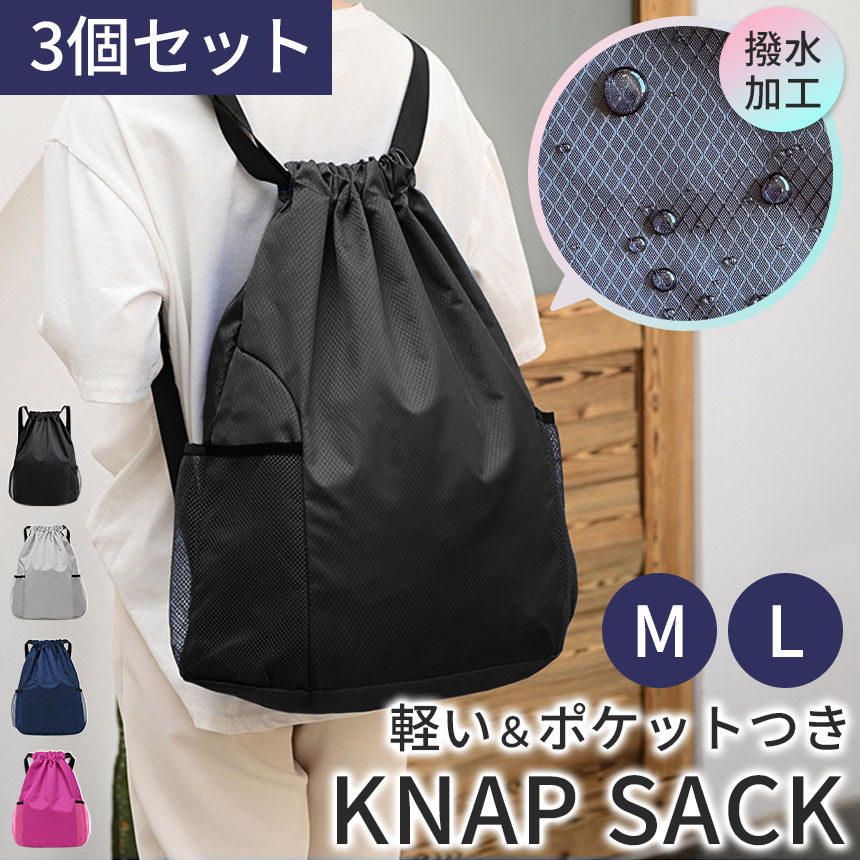 ナップサック 3個セット バッグ リュック 鞄 巾着 ナップザック リュックサック 撥水加工 軽い スポーツ 大人 子ども 大容量 ポケット 部活 プ