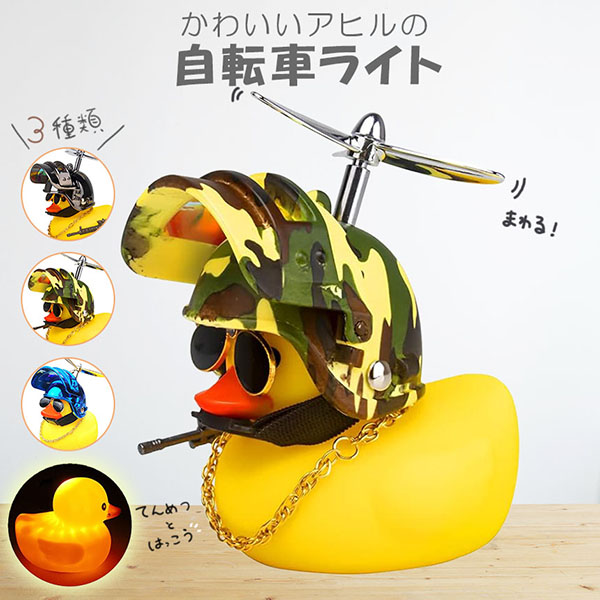 自転車ライト アヒルライト 黄色アヒル 可愛い 自転車ベル プロペラ搭載 ライト点滅 夜間走行に バイク 車にも 夜間