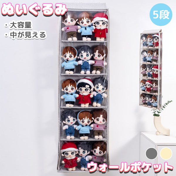 【大容量収納】壁やドア・タンスなどに掛けて使える収納用ウォールポケットです。数が多くなってしまいがちなぬいぐるみを縦に収納してスペースの節約ができます。ポケットの表面はクリアなので、収納したぬいぐるみを観賞用として飾ることもできます♪中が見えるから整理もしやすく片付けが楽になります。ぬいぐるみ以外にも靴やタオル、文具用品など小物の収納にもぴったりです!