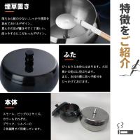 【ステンレス製お洒落なフォルムの灰皿】ブラック:メタリックなブラックで、質感もいいです。素材の風合いを損なわない塗装が施されています。シルバー:フタ、ボディー、取っ手を異なる磨きで磨かれたシルバー。しかし、大きな差があるわけではないので、統一感がありこだわりを感じます。使い込むほどについていく傷も味となり、一層その無個性を個性に変えていくようなシルバーです。水を入れても、そのままでもお使いいただけます。蓋をすれば、臭いや家事の予防にもなります。(火事防止のため、水を入れてのご使用をお勧めします。)