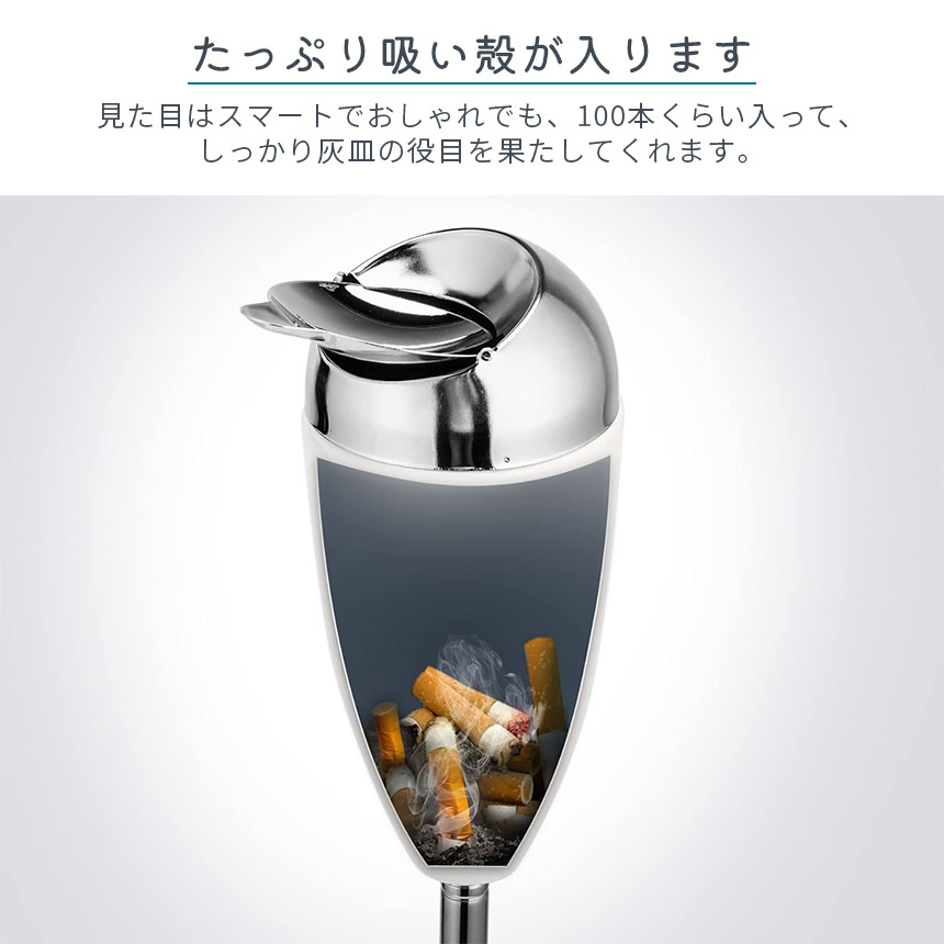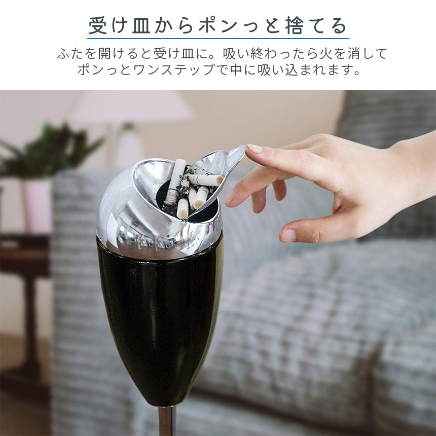【見た目も機能もパーフェクトな灰皿】見た瞬間、かわいい!おしゃれ!と聞こえてきそうなレトロポップなスタンド灰皿です♪ホワイトやブラックはモダンな雰囲気もあり、オフィスでもシックなお部屋にもばっちり合います。置いていたらお部屋のインテリアの一部にもなるデザインです。