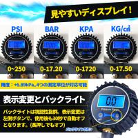 【測定範囲】精度:±1%;0〜250PSI/1720KPA/17.20BAR/17.50Kgf/cm2の、4つの測定単位が対応可能