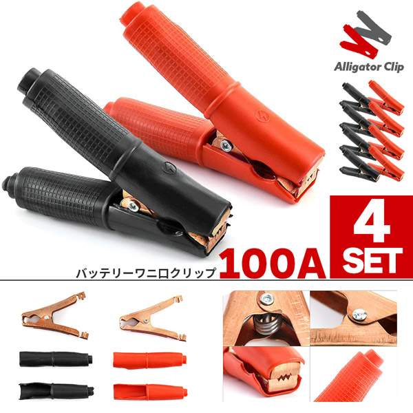 〇100Aワニ口クリップ赤黒f08-31ax4〇