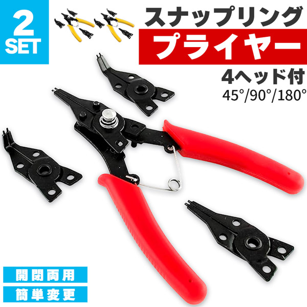 ◎軸・穴両用スナップリングプライヤー◎【素材】高品質の高炭素鋼からの精密に鍛造、特殊な高周波熱処理で硬化されていて、強力で耐摩耗性があり、高硬度です。【1セット内容】本体×1、交換用ヘッド×4【サイズ】約110x140mm(ヘッドを取り付けた全体。)※多少誤差があります。