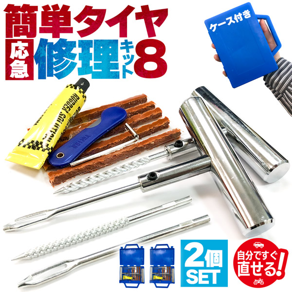 自分で簡単にすぐパンク修理できます。チューブレスタイヤのオートバイから乗用車・4WD、ATV、トラクター、芝刈り機、RV、ジープ、トラックなどの車種に適用します。