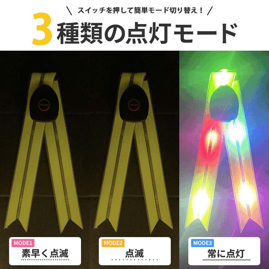 ヒヤッとしたことありませんか?・車に轢かれそうになったことがある...。・いつも街頭が少ない道を通るから不安...。・子供の登下校が不安...。暗闇の中には危険がいっぱいです!「充電式 光るストラップ V型」で解決できます!