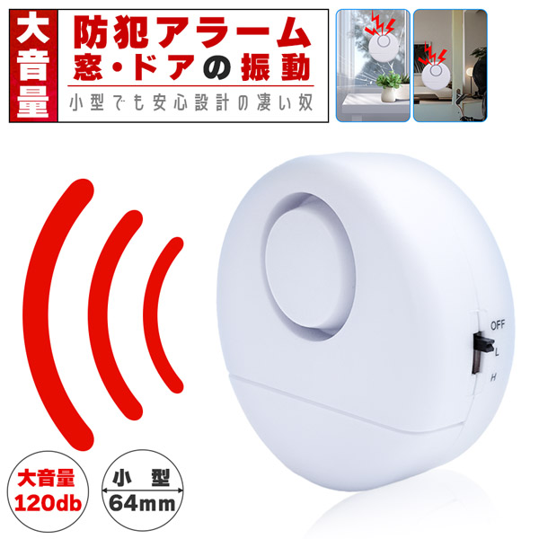 『窓・ドアの振動感知!防犯アラーム』◎小型でも大音量!しっかり警告◎心無い犯罪が多発しています。対策していますか?・空き巣だけでなく家にいるのに大胆に侵入しようとする犯罪・2階にいる間に1階から侵入、またはその反対・家だけでなく会社や倉庫を狙った強盗・赤ちゃんや小さいお子様のよきせぬ窓の開閉等々、思っていた以上に危険はいっぱいです。